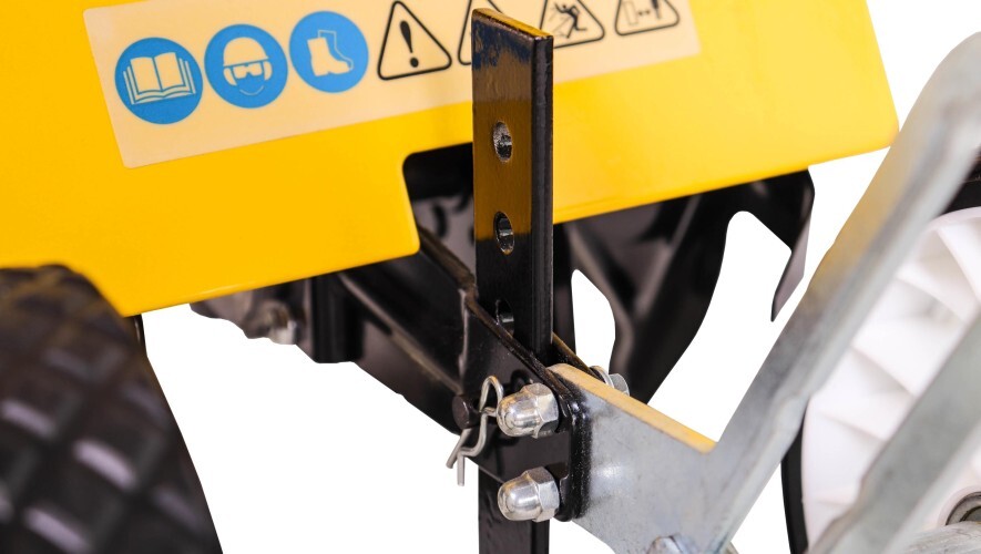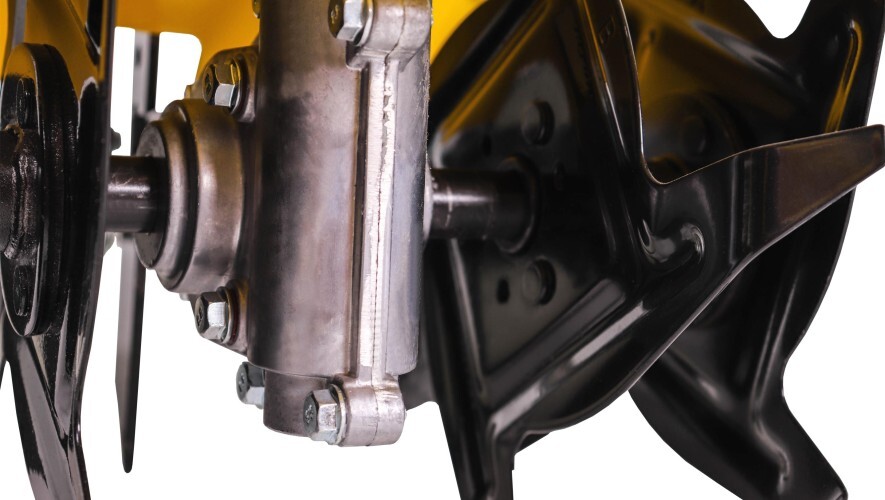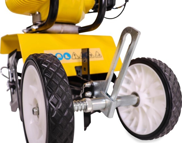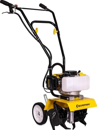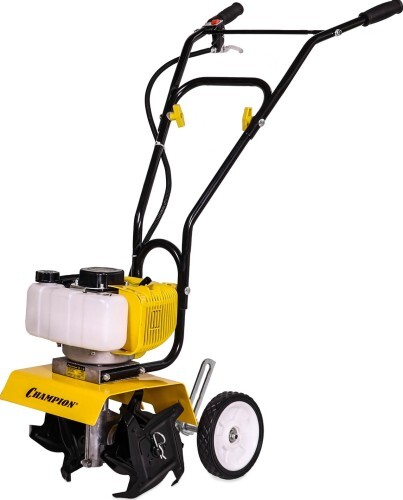 Культиватор Champion GC 252 комплектуется двойными транспортировочными колесиками, которые при работе опрокидываются вверх, позволяя выставить глубину обработки при помощи сошника. Двигатель культиватора, для простоты запуска, оборудован примером подкачки топливной смеси напрямую в карбюратор и двух диапазонной воздушной заслонкой, обеспечивающей запуск не прогретого мотора.