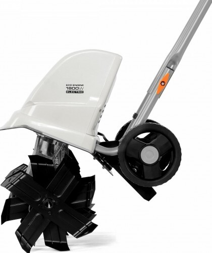 Электрический культиватор мощностью 1800 Вт в сочетании с системой из 24 ножей, расположенных на 6 фрезах, обеспечивает высокое качество обработки почвы. Отсутствие вредных выбросов позволяет использовать его в закрытых помещения, например теплицах.
