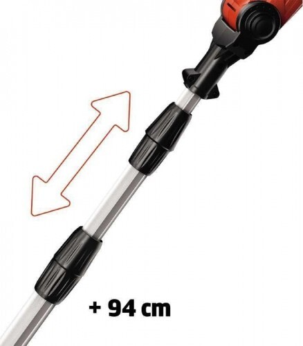 Аккумуляторный высоторез Einhell GE-HC 18 Li T - это мощное устройство, которое легко режет ветви, верхушки деревьев,а также высокие изгороди, при это пользователь находится внизу, на земле. Металлические шестерни обеспечивают длительный срок службы, а лезвие качества OREGON и цепь OREGON обеспечивают чистые результаты резки. Верхняя часть может вращаться на 90 ° и позволяет легко горизонтально резать. Удобные рукоятки предотвращают скольжение во время распиловочных работ. Автоматическая цепная смазка обеспечивает цепь необходимой смазкой с помощью масла, находящегося в маслянном баке. При необходимости цепь можно натянуть без использования дополнительного инструмента. Ножи для обрезки изгороди, изготовленные из лазерной огранки и алмазной стали, обеспечивают чистоту резания. Высоторез можно безопасно и удобно транспортировать в устойчивом чехле. Регулируемая телескопическая рукоятка может быть установлена на высоту от 880 до 1820 мм. Регулируемая дополнительная ручка может быть адаптирована к любому пользователю благодаря ее практичной быстрой блокировке. Для выполнения даже сложных разрезов, головка мотора может быть наклонена в 7 разных положений, а основной захват - в 4 положения. Аккумулятор и зарядное устройство в комплект поставки не включены, их необходимо приобрести дополнительно.