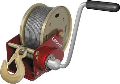 Лебёдка ручная с подготовкой на опорной части под крепление болтами. Удобна в монтаже, её можно прикрепить к любой поверхности, куда закручиваются винты-саморезы. Может служить помощником при вытаскивании автомобиля при попадании в яму или в грязь. Десятиметрового прочного троса хватит до ближайшего столба или дерева, а тяговое усилие в 1600 кг поможет сдвинуть застрявшею технику.