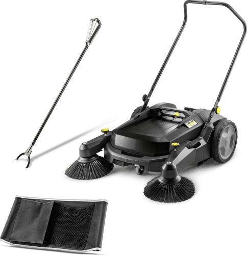 Компактная ручная подметальная машина Karcher KM 70/20 C 2SB Anniversary Edition выпущена к 90-летнему юбилею компании Karcher, модель черного цвета, в комплектацию которой дополнительно включены щипцы для крупного мусора и сумка для принадлежностей. KM 70/20 C 2SB Anniversary Edition с роликовой и двумя боковыми щетками работает по принципу «совка для мусора», поэтому проста в эксплуатации. Отходящий воздух, поступающий вместе с пылью в контейнер за счет вращения щеток, проходит через фильтры пылеподавления.