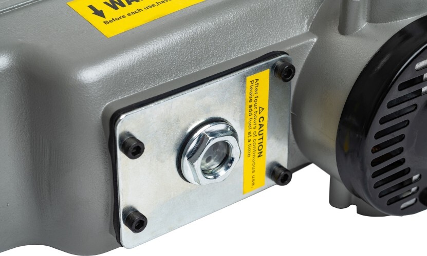 Внимание! При первом использовании отбойного молотка необходимо: положить отбойник смотровым окошком вверх. Открутить заглушку (смотровое окошко) и заполнить камеру моторным маслом вязкостью SAE 15W-40 (или другое масло с такой же вязкостью) объемом 30 мл. Подождать 30 минут, добавить еще 30 мл и закрутить заглушку. Можно приступать к работе. При дальнейшем использовании контролируйте наличие масла в камере, при необходимости доливайте.
