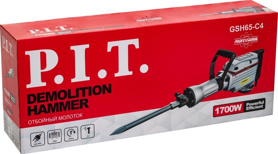 Сильный инструмент GSH65-C4 для тяжелых задач. Благодаря выдающейся силе удара в 42 Дж разрушает бетон, кирпич, грунт, асфальт. Оснащен самым крепким и надежным типом патрона - HEXAGON. Долгий срок службы обеспечивает цельнометаллический алюминиевый корпус, который снижает риск поломки и предотвращает протечку масла. Полностью медная обмотка выдерживает до 200°C. Дополнительная рукоятка и эргономичная форма гарантируют удобную работу. Мощный и эргономичный инструмент для ударного разрушения конструкций. Отличный выбор для ремонта и стройки.