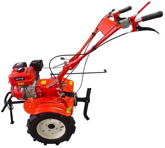Мотоблок оснащен двумя большими пневматическими колесами с глубокими протекторами, обеспечивающими отличную сцепку с землей. Техника отличается широкой функциональностью и оснащена креплением для навесного оборудования, выполняющего покос травы, возделывание почвы, уборку снега и др.