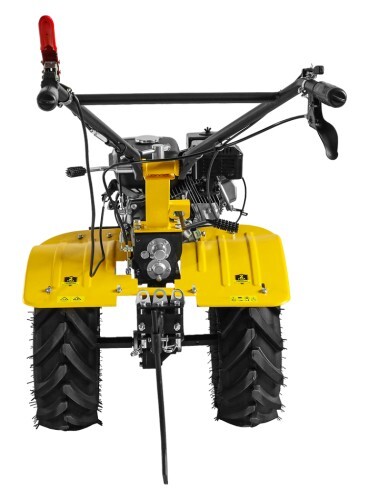 Мотоблок HUTER МК-8000Р BIG FOOT может использоваться не только на приусадебных участках и огородах, но и в небольших фермерских хозяйствах, так как отличается высокой производительностью. Оснащен мотором мощностью 8 л.с., благодаря чему сельскохозяйственная машина отлично справляется с обработкой почвы любого типа. Наличие автоматического регулятора частоты вращения обеспечивает простоту эксплуатации техники, а хромированная поршневая группа – длительность работы. Воздушный фильтр в масляной ванне предупреждает попадание пыли в двигатель. Мотоблок данной модели комплектуется фрезами диаметром 30 см. Поскольку они изготовлены из закаленной стали, отлично подходит для обработки любой почвы. Привод BOM 14 мм позволяет легко подключать различное навесное оборудование, что дает возможность рыхлить, разравнивать и выполнять другие функции. Топливный бак HUTER МК-8000Р BIG FOOT вмещает 3,6 л. Так как расход горючего составляет 375 г/кВт в час, можно долго работать без дозаправки. Особенностью этой сельскохозяйственной машины являются большие колеса с агрессивным протектором. Благодаря им, техника обладает хорошей проходимостью. Наличие задней передачи исключает застревание в почве.