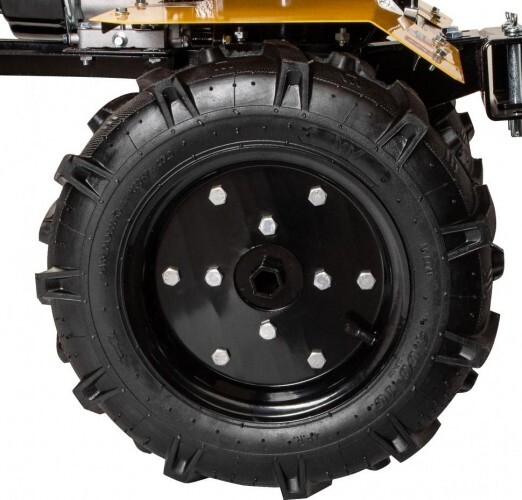 пневмоколеса увеличенного диаметра обеспечивают маневренность, поэтому мотоблок можно использовать даже на вязком грунте после дождя