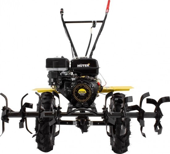Мотоблок HUTER MK-11000PЕ подойдет тем покупателям, которые планируют большой объем работ на приусадебном участке. Продуманная конструкция машины расширяет ее функционал и позволяет механизировать различные сельскохозяйственные работы. Производитель предусмотрел возможность использования различного навесного оборудования – косилок, ворошилок, картофелекопалок. Активная навеска подключается через ВОМ 18 мм. Особенность модели HUTER MK-11000PЕ – наличие электростартера от АКБ. Мотоблок работает на бензиновом топливе, объем бака увеличен и составляет 6 л. При расходе 375 гр/кВт в час обеспечена длительная работа без дозаправки. Четрыехтактный бензиновый двигатель оснашен воздушной системой охлаждения и датчиком масла. Усиленная хромированная поршневая группа обеспечивает надежную работу мотора. Чугунный корпус редуктора гарантирует надежную защиту механизма. Тип редуктора: шестеренчатый в масляной ванне. Продуманная конструкция сельскохозяйственной машины дает возможность: