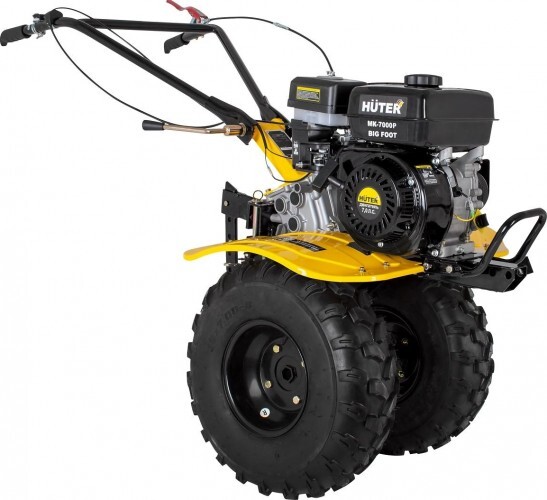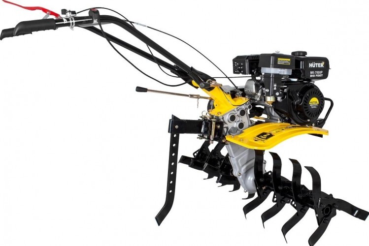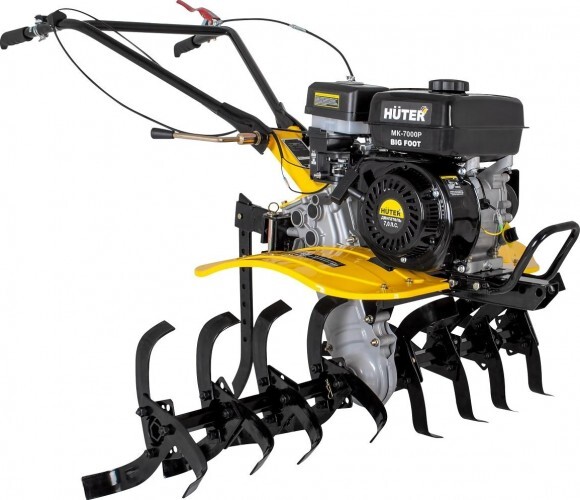 Сельскохозяйственная машина HUTER MK-7000P BIG FOOT идеально подходит для обработки почвы путем культивации. Также может применяться для выравнивания почвы и выполнения других манипуляций. Возможность применения разного навесного оборудования делает агрегат многофункциональным. Агрегат оснащен бензиновым двигателем мощностью 7 л. с., и может использоваться на приусадебных участках и небольших фермерских хозяйствах. Подходит для выполнения работ в средних и больших объемах.За один проход мотоблок способен обрабатывать полосу шириной до 100 см. Высокую производительность и качество культивации обеспечивают прочные металлические фрезы диаметром 30 см. Ширину и глубину обработки можно регулировать в зависимости от поставленных задач и особенностей выращиваемых культур. Большие колеса диаметром 19” гарантируют хорошую проходимость HUTER MK-7000P BIG FOOT даже по рыхлому грунту без грунтозацепов. Наличие задней передачи позволяет легко освободить мотоблок при застревании. Для удобства оператора органы управления расположены на рукоятке