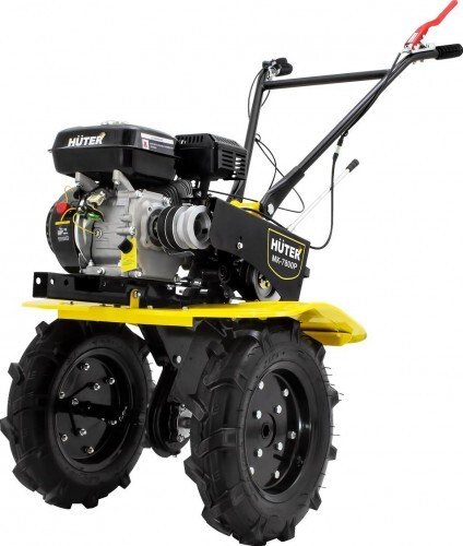 HUTER МК-7800P – сельскохозяйственная машина, предназначенная для культивации почвы на участках средней и большой площади. Мотоблок легко справляется с боронованием, вспашкой, выравниванием и другими видами обработки почвы. Легко дополняется окучником, косилкой, плугом, ворошилкой и другим навесным оборудованием. Активное навесное оборудование подключается через ремень. Оснащается четырехтактным бензиновым ДВС мощностью 7,8 л.с. ДВС оснащен датчиком уровня масла, частота вращения регулируется автоматически. Машина имеет вместительный бензобак объемом 3,6 л. при расходе топлива (АИ-92) 375 гр/кВт в час это длительная работа без дозаправки. Шестеренчато-цепной редуктор надежно защищен крепким чугунным корпусом. Ширина обработки определяется используемыми лезвиями, она может составлять до 100 см. Острые закаленные фрезы диаметром 30 см справляются даже с самыми тяжелыми почвами. Глубина обработки регулируется сошником. Модель имеет 1 заднюю и 2 передних передачи, в том числе пониженную для качественной вспашки. На задней передаче удобно извлекать фрезы из обработанной почвы. Колеса 4х10 с глубоким протектором: мотоблок легко перемещается по любому покрытию, при необходимости можно установить грунтозацепы.