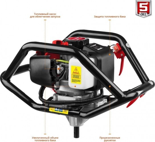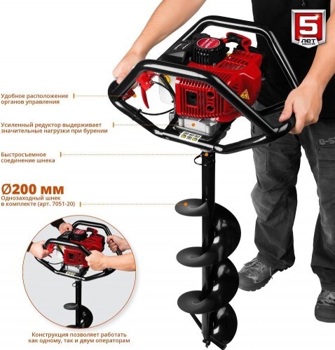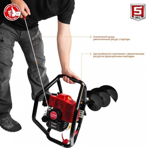 Универсальный мотобур оптимален к применению при монтаже столбов, заборов, ограждений и других целей связанных с бурением грунта. Конструкция рукоятки позволяет работать как одному оператору, так и двум одновременно, что повышает эффективность бурения и обеспечивает дополнительную сохранность двигателя при работе и транспортировке.