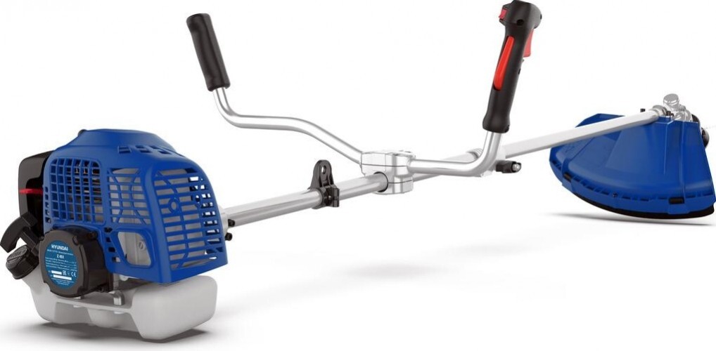 Бензиновый триммер Hyundai Z 451 – мощная модель для больших участков и интенсивной работы. Такая мотокоса пригодится не только дачникам, но и работникам коммунальных и дорожных служб. Бензиновый двигатель обеспечивает максимальную мобильность, позволяет не зависеть от наличия поблизости электрической розетки и работать в любом месте. Катушка с леской толщиной 2,8 мм оптимальна для скашивания газонной и обычной полевой травы. Для работы с жестким сорняками, сухостоем и кустарниковой порослью лучше установить на триммер трехлопастный стальной нож с лезвиями толщиной 1,3 мм, который идет в комплекте. Бензиновый триммер Hyundai скашивает полосу ширину 45 см за один проход при установке лески и 25,5 см при работе с ножом. Вы быстро расчистите от зарослей травы приусадебный участок, обочины дорог, территории дворов и парков. Бензокоса особенно удобна при работе на склонах и на неровной поверхности, где работа обычной газонокосилки затруднена.