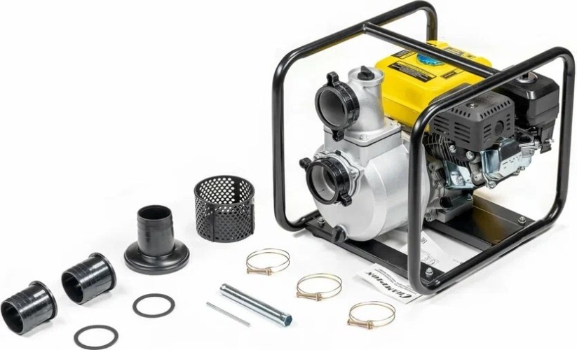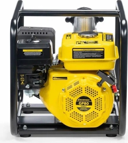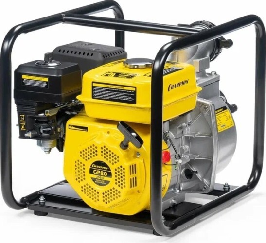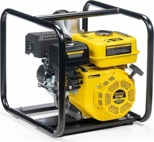 Мотопомпа Champion GP80 — мощное устройство для подачи воды на участок. Оно также позволяет осуществлять перекачивание, откачку и перемешивание больших объемов жидкости. Отличный вариант для частного дома, коммунальной службы, строительной фирмы. Основной задачей этого агрегата является работа с незагрязненной водой, а также с жидкостью, которая имеет крупные включения. Данный агрегат без труда справляется с поливом садовых и сельскохозяйственных растений, ирригацией засушливой почвы, тушением пожаров, реализацией некоторых строительных манипуляций и с иными работами. Такая модель отличается увеличенным объемом масляного картера и бензобака. Она присоединяется к трубам, которые имеют диаметр 3 дюйма. Мотопомпа Champion GP80 оснащена мотором внутреннего сгорания, который позволяет перекачивать 1000 литров воды в минуту. Мотор одноцилиндровый, четырехтактный. Есть хорошее воздушное охлаждение. Предусмотрен самовсасывающий водяной насос. Он отличается повышенной надежностью. В этой модели есть обратный клапан, который не допускает всасывание воды из корпуса насоса. Благодаря этому всегда есть достаточный объем воды для следующего запуска агрегата. Топливный бак большой, что способствует продолжительной работе без дозаправки. Устройство отличается экономичностью в использовании. Мотопомпа Champion GP80 может работать на любой поверхности. Однако производитель рекомендует эксплуатировать данное изделие на ровном и твердом основании. При работе агрегат издает минимум шума, что повышает комфорт использования.