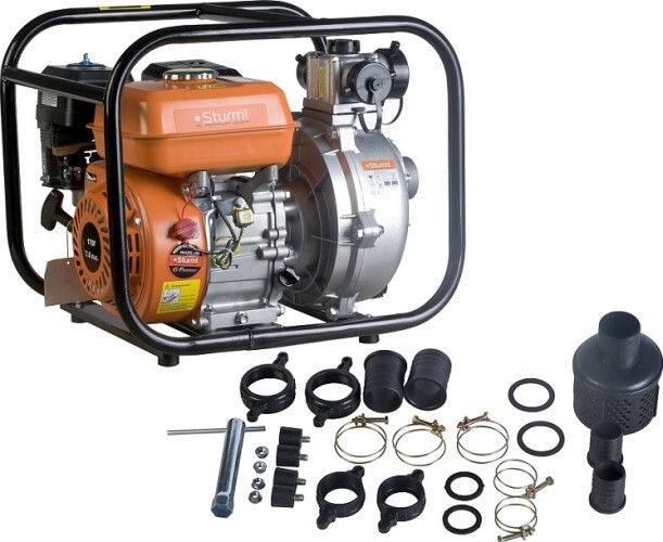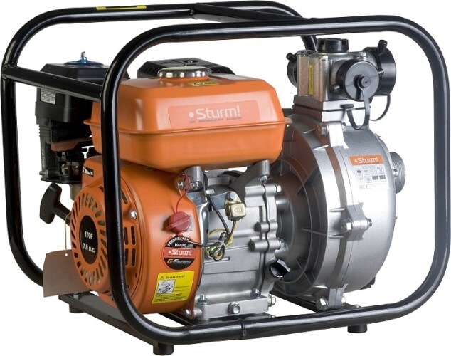 Мотопомпа бензиновая STURM BP8760VD для перекачивания чистой и слабозагрязненной жидкости с частицами размером до 5 мм. Используется на садовом участке для организации полива и орошения. Мотопомпа имеет 4-х тактный двигатель мощностью 6.5 л.с. Благодаря большому баку не требуется частая заправка агрегата. Производительность модели составляет 600 л/мин. Защитная рама предотвращает повреждения двигателя и облегчает процесс перемещения по территории.