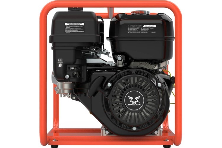 Бензиновая мотопомпа Zongshen TG 40 для перекачки грязной воды с максимальным размером частиц до 25 мм. Данная насос имеет очень высокую производительность в 75 куб.метров в час (1250 л/мин), таких показателей удалось достичь за счет увеличенных диаметров патрубков (100 мм) и мощного двигателя Zongshen GB 420 с максимальной мощностью 15 л.с.