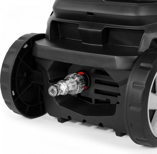 Мойка высокого давления с алюминиевой помпой снабжена грязевой фрезой и встроенным генератором пены. Для защиты электродвигателя от перегрева устройство оснащено датчиком воды, который автоматически отключает питание помпы при перебоях в водоснабжении.