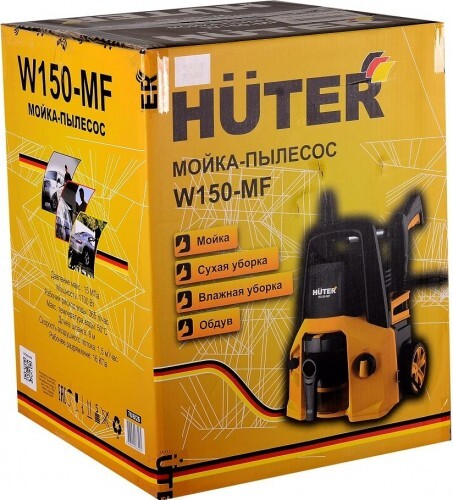 Мойка высокого давления с функцией пылесоса Huter W150-MF предназначена для мойки транспортных средств, авто и мототехники, велосипедов, фасадов зданий, дорожек, садовых принадлежностей и т.д., а функция пылесоса позволяет использовать устройство для очищения от пыли и мелкого мусора салона и багажника автомобиля, гаража или любого другого помещения. Кроме того, в режиме пылесоса устройство способно убирать не только сухую пыль и мусор, но и воду. А также изделие может применяться как воздуходув, для создания направленного потока воздуха. Оборудование обладает большим ресурсом благодаря надёжному электродвигателю и алюминиевой помпе. Высокая производительность и широкий функционал при малых размерах и малом весе делают мойку мобильной и комфортной в работе, а возможность забора воды даже из ёмкости делает её удобной в любых условиях эксплуатации. Мойка-пылесос позволяет иметь одно удобное устройство, вместо двух - мойки и пылесоса.