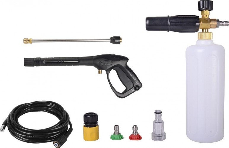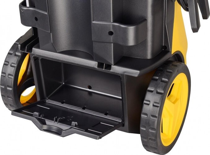 Агрегат установлен на колеса, которые обеспечивают мобильность и облегчают доступ к месту забора воды и объекту, подлежащему обработке. Длина шланга увеличена до 8 м, автомобиль можно мыть без передвижения мини-мойки. Профессиональный пеногенератор создает плотную пену, способствующую повышению качества мытья.
