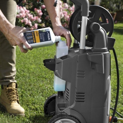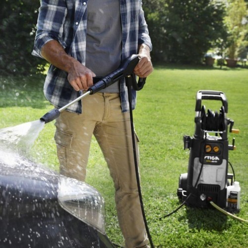 Мойка высокого давления STIGA HPS 345 R предназначена для простой и удобной очистки поверхностей среднего размера струями холодной воды. Эта мойка высокого давления оснащена асинхронным электродвигателем мощностью 2100 Вт, обеспечивающим максимальное давление 145 бар и расход 450 л/ч. В комплект поставки входит практичный шланг высокого давления длиной 8 м. Мойка отличается малым весом, хорошей устойчивостью и удобством перемещения благодаря прорезиненным колесам и телескопической рукоятке с нескользящей поверхностью. Модель HPS 345 R оснащена катушкой для намотки шланга и отсеком для хранения запчастей и принадлежностей. Модель HPS 345 R идеально подойдет для очистки умеренных загрязнений на различных изделиях и поверхностях, включая садовые приспособления, террасы и лестницы, а также для мойки велосипедов, мотоциклов, автомобилей, тротуаров, дорожек, деревянных изделий и инструментальных ящиков.