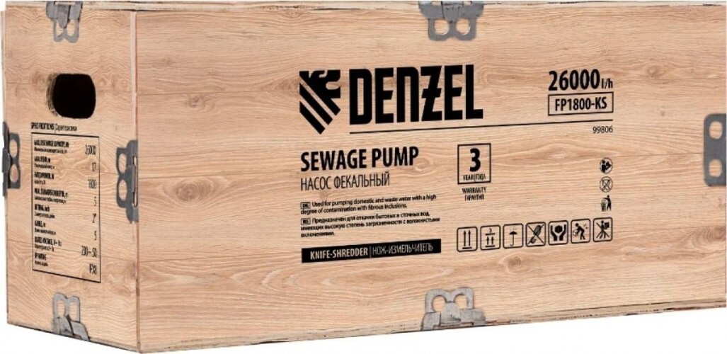 Мощный 1800 Вт фекальный насос Denzel FP1800-KS имеет производительность до 26000 л/ч и применяется для работы как с грязной, так и с чистой водой. Его можно использовать для откачки выгребных ям, емкостей, водоемов, канав, стоков и траншей или осушения затапливаемых помещений. А благодаря ножу-измельчителю в конструкции он измельчает рызные крупные частицы в воде, поэтому подходит для организации системы канализации. Насос имеет напор до 17 м, этого достаточно для подачи воды в системы орошения с несколькими точками водоразбора.