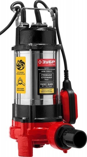 Насос дренажный ЗУБР НПФ-1100-Р с режущим механизмом предназначен для откачки загрязненных бытовых, сточных и смешанных вод, содержащих крупные включения (фекалии), чистых, дождевых, дренажных и грунтовых вод. Благодаря наличию специального режущего механизма с мощным ножом может перемалывать даже мелкие предметы и средства гигиены, предохраняя канализацию от засорения. Корпус из чугуна и нержавеющей стали значительно увеличивает срок службы устройства. Поплавковый выключатель обеспечивает автоматическое включение/выключение при изменении уровня воды. Для исключения образования воздушных пробок в рабочей полости насоса имеется клапан. Термопредохранитель для защиты от перегрева. Соединительный штуцер 2".