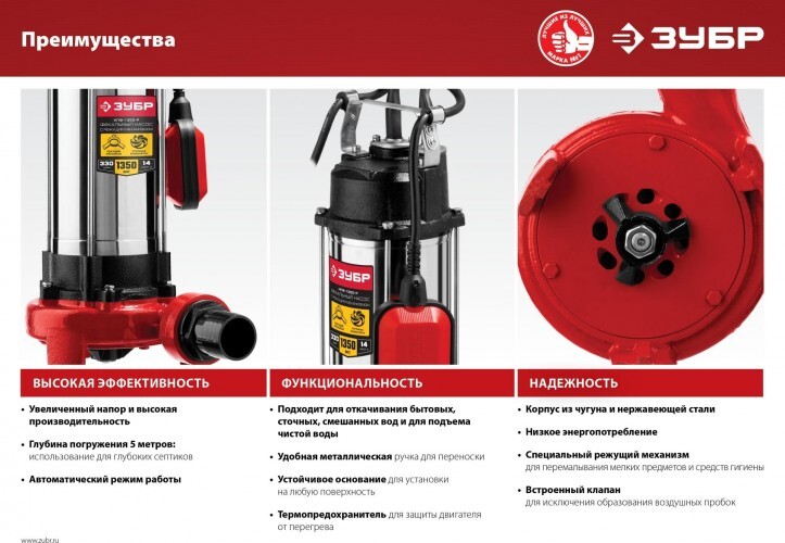 Насос дренажный ЗУБР НПФ-1350 применяется для перекачивания воды на садовых участках при осушении емкостей и водоемов, организации забора воды с глубины (колодцы, скважины) и подачи на высоту, использовании в системах аэрации и дренажа. Допускается использование насоса в загрязненной воде.