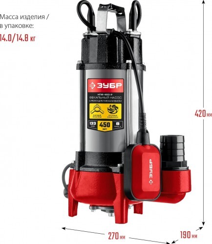 Насос дренажный ЗУБР НПФ-450-Р применяется для перекачивания воды на садовых участках при осушении емкостей и водоемов, организации забора воды с глубины (колодцы, скважины) и подачи на высоту, использовании в системах аэрации и дренажа. Допускается использование насоса в загрязненной воде.