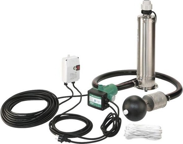Полностью затопляемый многоступенчатый самоохлаждающийся погружной насос со всасывающим патрубком Rp 1¼ (для подсоединения плавающих всасывающих фильтров в качестве опции); штатив с 4 вибропоглощающими опорами для установки на полу. Для перекачивания чистой воды из резервуаров, цистерн или колодцев с глубиной погружения до 17 м. Насос в однофазном исполнении. Возможна установка вне воды. В комплекте с соединительным кабелем длиной 20 м, распределительной коробкой (IP55) с устройством защиты электродвигателя от перегрева, выключателем питания, а также с соединительным кабелем длиной 2 м, который снабжен штекером с защитным контактом. Предохранительный трос из полипропилена. Все детали, находящиеся в контакте с перекачиваемой жидкостью, не подвержены коррозии. В комплект поставки включены все компоненты, необходимые для основной установки. К ним относятся: Насос Прибор управления в комплекте кабель, предохранительный трос; кабельная стяжка, плавающий всасывающий фильтр тонкой очистки; всасывающий шланг длиной 1,5 м.
