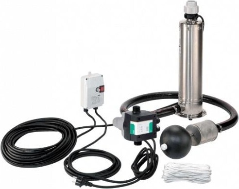 В комплекте с соединительным кабелем длиной 20 м, распределительной коробкой (IP55) с устройством защиты электродвигателя от перегрева, выключателем питания, а также с соединительным кабелем длиной 2 м, который снабжен штекером с защитным контактом.