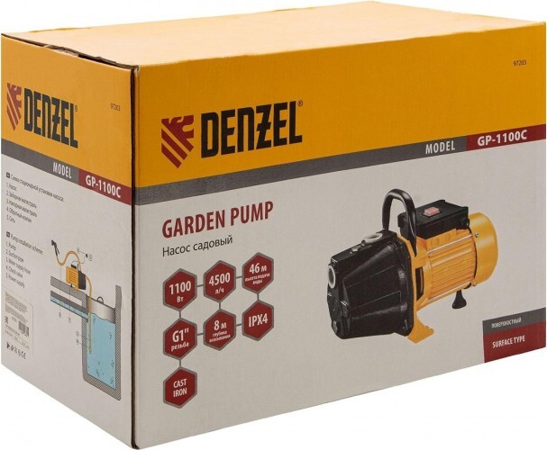 Мощный 1100 Вт садовый поверхностный насос Denzel GP1100C подходит для подъема и подачи чистой воды из резервуаров и колодцев с глубины до 8 м. Используется для организации систем полива на даче и для повышения давления в водопроводной системе загородного дома, чтобы обеспечить стабильный напор до 46 м. Высокая производительность до 4500 л/ч позволяет применять насос в системах с большим количеством водозаборных точек.