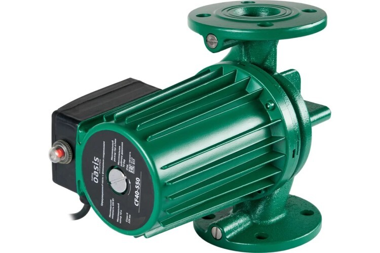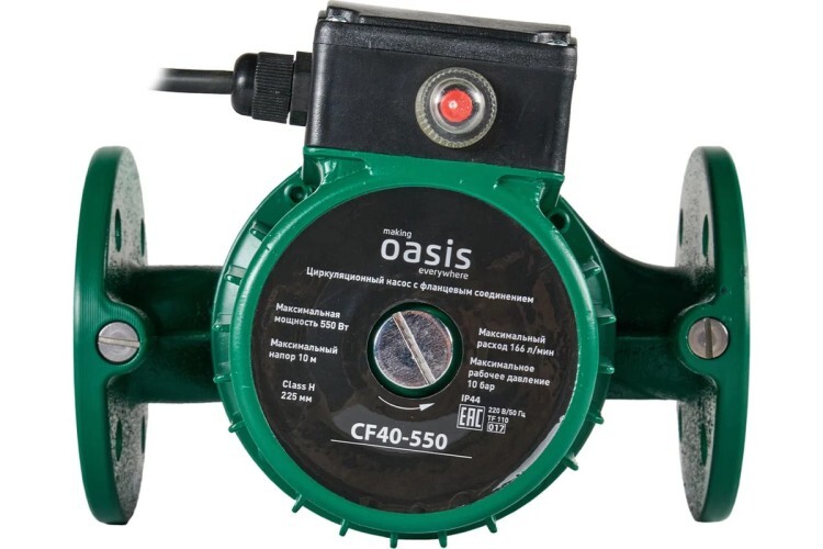 Циркуляционный насос с фланцевым соединением making Oasis everywhere CF40-550 - это прибор, который выполняет циркуляцию воды в замкнутой системе отопления. Он особенно полезен в загородных домах площадью более 100м^2, так как в таких условиях естественная конвекция не может обеспечить равномерный прогрев всех отопительных приборов.