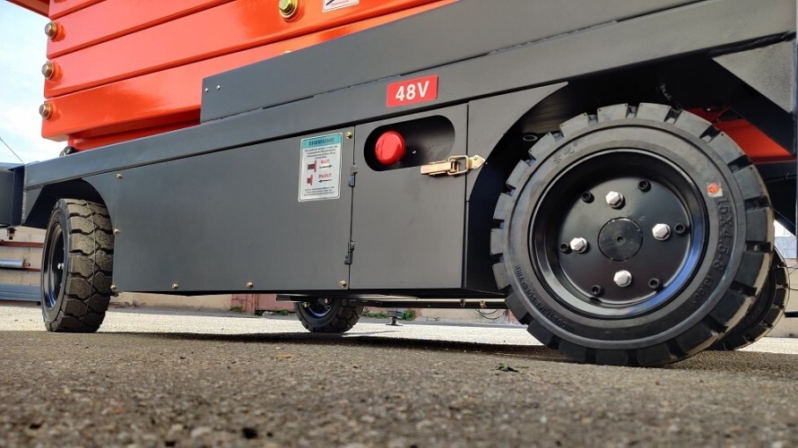 Оснащены колесами на протекторной литой резине и имеют большой дорожный просвет (клиренс)