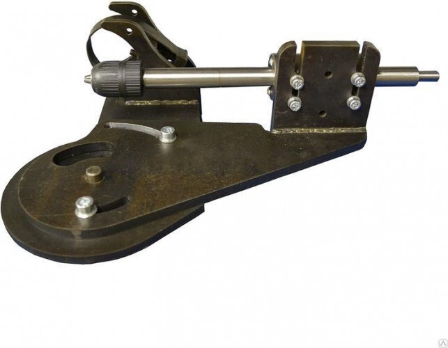 DT-80 крепится к любому верстаку и имеет хвостовик для присоединения электродрели с одной стороны, а также трехкулачковый патрон для режущего инструмента.