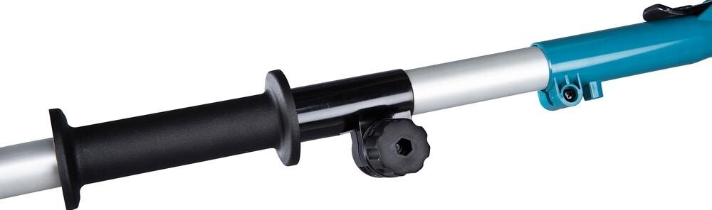 Телескопическая штанга (от 1 889 мм до 2 511 мм) позволяет подравнять живые изгороди высотой до 4 м с учетом роста пользователя. Режущая поверхность имеет 10 положений фиксации для выбора оптимального угла реза. Ножи заточены с обеих сторон и имеют длину 460 мм. Две рукоятки для комфортной работы.