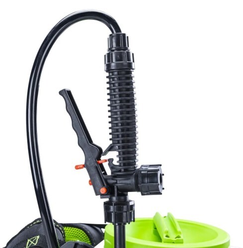 Существенно большие производительность и равномерность распыления по сравнению с моделями с ручной подкачкой. Осуществляет эффективное опрыскивание на высоту до 4,5 метров.