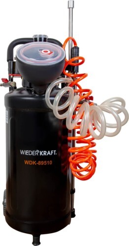 Пеногенератор WIEDERKRAFT WDK-89510, оснащен функцией пневматического наполнения, что позволяет подключать бак к большой емкости со средством, тем самым быстро его наполнив.