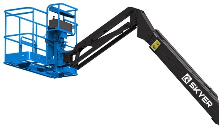 SKYER DKP2723 — компактный и маневренный самоходный дизельный коленчатый подъемник. Оснащен стрелой с поворотным гуськом, который позволяет преодолевать препятствия и достигать сложных рабочих областей. Предназначен для эксплуатации на открытой местности, так как оборудован дизельным двигателем, который вырабатывает выхлопные газы в процессе работы. Использование подъемника в закрытых помещениях также возможно, но при условии хорошего проветривания.