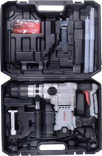 Перфоратор - электроинструмент, аналогичный дрели, но с наличием не механического, а пневматического ударного механизма. Именно поэтому перфоратор используют для сложных работ по твёрдым материалам - бетону, кирпичу. Агрегат используется для сверления и пробивания отверстий в прочных материалах без приложения особых физических усилий со стороны оператора. Принцип работы перфоратора – это разрушение обрабатываемого материала с помощью поступательных и вращательных действий рабочего элемента. Состоит перфоратор из электрического двигателя, редуктора, ударного механизма и патрона для крепления рабочих инструментов (буры, коронки, зубила и т.д.).