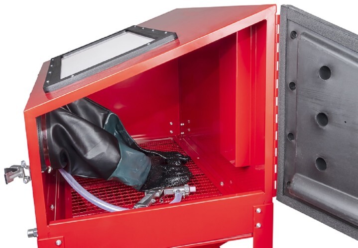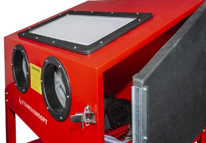 Пескоструйная камера подходит для обработки различных деталей и предназначена для снятия грунта, краски, ржавчины.