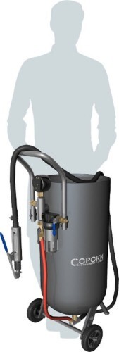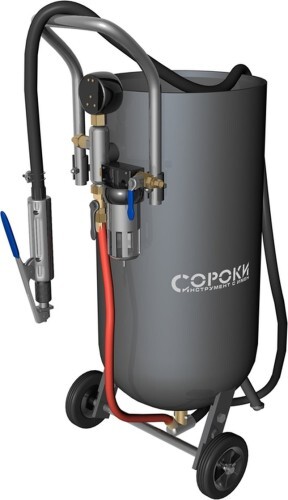 Пескоструйные аппараты предназначены для очистки воздушно-пескоструйным способом внутренних и наружных поверхностей от старой краски, ржавчины, окалины, различного рода загрязнений, а также для подготовки поверхности под покраску при ремонтных работах на энергетических, судоремонтных, автомобильных сервисах и других производственных предприятиях. В комплект входит пистолет с комплектом форсунок, шланг и маска. Для подключения потребуется компрессор. Применяемый абразив: песок речной, кварцевый песок, электрокорунд, дробь. Рекомендованная максимальная загрузка абразивного материала (кварцевый песок) - 40 кг.