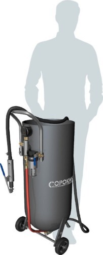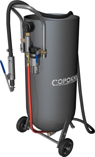 Пескоструйные аппараты предназначены для очистки воздушно-пескоструйным способом внутренних и наружных поверхностей от старой краски, ржавчины, окалины, различного рода загрязнений, а также для подготовки поверхности под покраску при ремонтных работах на энергетических, судоремонтных, автомобильных сервисах и других ремонтных и производственных предприятиях. В комплект входит пистолет с комплектом форсунок, шланг и маска. Для подключения потребуется компрессор. Применяемый абразив: песок речной, кварцевый песок, электрокорунд, дробь. Рекомендованная максимальная загрузка абразивного материала (кварцевый песок) - 70 кг.