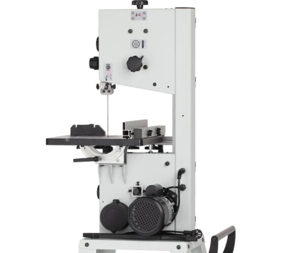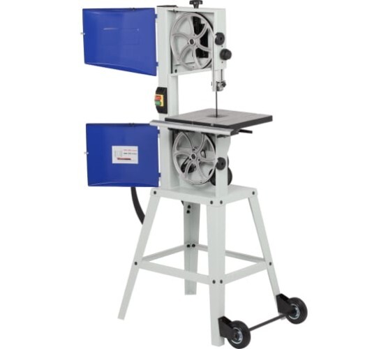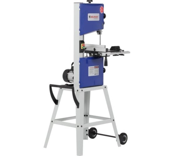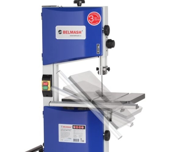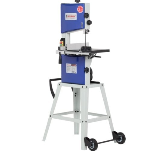 Ленточнопильный станок BELMASH WBS-254/2 с высокой точностью производит прямолинейный раскрой и криволинейный рез сложной формы. Он легко справится с брусом, щитом, листовыми материалами (ДСП, ДВП, МДФ) и станет незаменимым помощником в вашей мастерской. При соответствующей наладке на станке можно выполнять следующие виды обработки: разрезание на заготовки заданной длины, продольное резание, поперечное резание, пакетное резание, резание по кривой, резание под углом. Питание станка осуществляется от однофазной сети переменного тока напряжением 230 В. Электродвигатель асинхронный, мощность - 450 Вт. Вращение от двигателя к шкивам передается с помощью ременной передачи. Скоростей пильного полотна две: 400 и 800 м/мин. Изменить обороты можно путем переброски ремня. На станок подходят пильные полотна длиной 1826 мм и шириной от 3 до 12,5 мм. Подобрать полотно Натяжение полотна производится ручкой плавной регулировки: поворот по часовой стрелке увеличивает натяжение, против часовой стрелки уменьшает.Рабочий стол изготовлен из алюминия, имеет возможность наклона от 0 до 45 градусов. К передней части стола крепится направляющая (со шкалами) для крепления параллельного упора. Его можно устанавливать как с правой, так и с левой стороны от пильного полотна. Кроме того, в столе есть Т-образный паз для установки углового упора, обеспечивающий угол от -30 до +30 градусов. Просвет до рамы - 245 мм. Максимальная высота обработки - 152 мм. Станок имеет возможность как напольной установки, так и настольной. В комплектации имеется каркасное основание. Для мобильности на него с одной стороны устанавливается ручка, а с другой - ось с колесами. Поэтому станок легко перемещать по мастерской. При установке на штатную подставку высота рабочей поверхности составляет 980 мм. На задней части корпуса для подключения вытяжной установки выведен патрубок диаметрами подключения 49, 74, 99 мм.