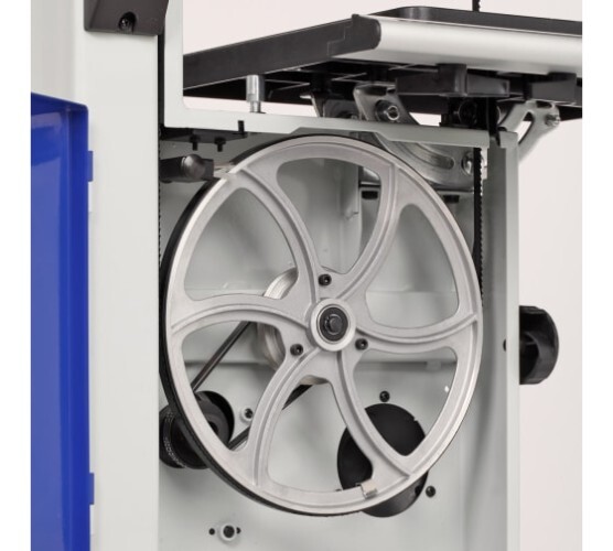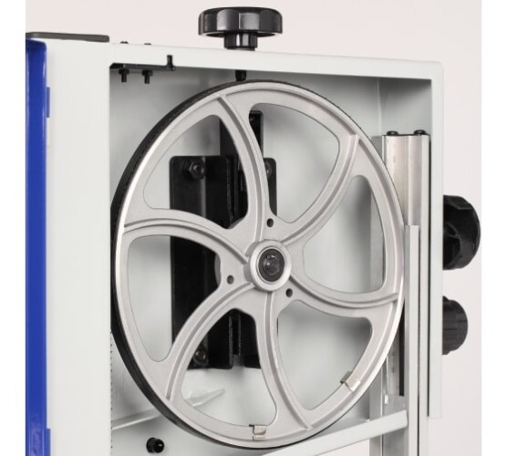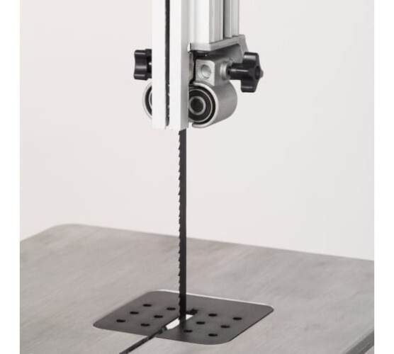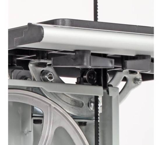 Удобный механизм сброса и натяжения пильного полотна упрощает подготовку станка к завершению и началу работы.