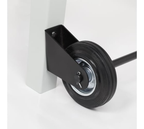 Благодаря ручке и установленной оси с колесами станок легко перемещается по мастерской.