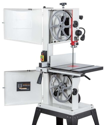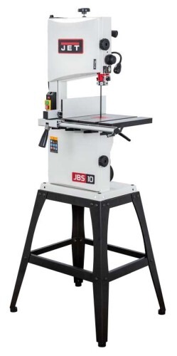 JWBS-10SL – напольная ленточная пила с трехопорными роликовыми направляющими, чугунным рабочим столом и двумя скоростями, предназначенная для любительской эксплуатации. Ее рабочие параметры позволяют «распускать» довольно крупные заготовки с высотой до 152 мм, предусмотрен наклон стола для выполнения скошенных резов.