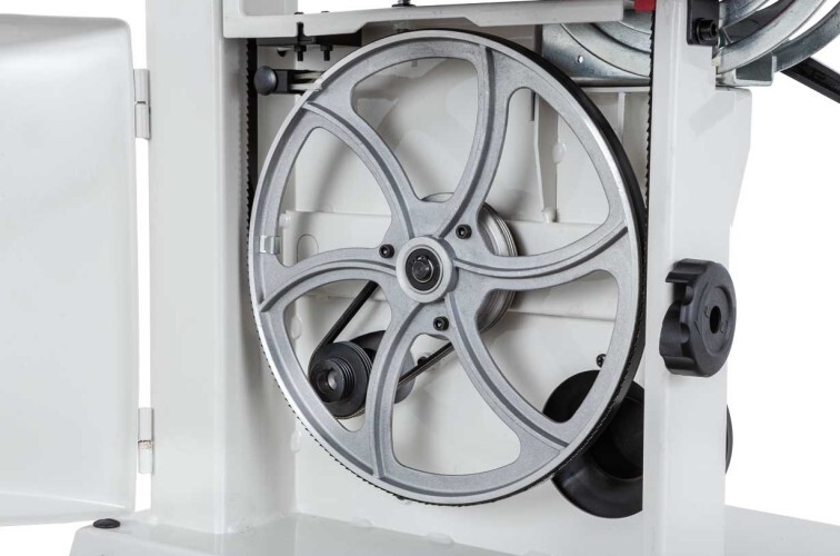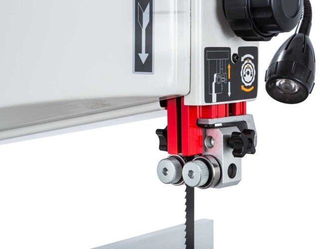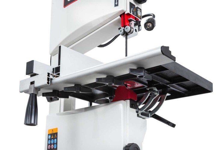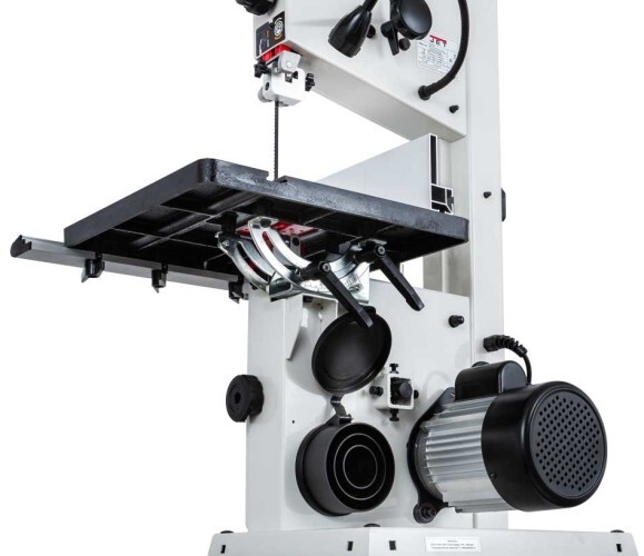 Базовая конструкция станка хорошо отработана, она используется давно при производстве многих схожих моделей и, в случае Jet JWBS-10SL, имеет ряд дополнительных эксклюзивных улучшений. Среди них рычаг для быстрого ослабления и натяжения полотна, позволяющий одним движением переводить станок из состояния хранения в рабочее. Хорошо продуманы и удобно реализованы некоторые «мелочи», вроде светодиодной подсветки или «ступенчатого» патрубка аспирации, позволяющего без всяких переделок подсоединить шланг любого из трех диаметров (50, 75 или 100 мм).