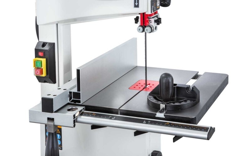 Станок оборудован регулируемым двухпозиционным параллельным упором. Он имеет две рабочие поверхности: высокую для перпендикулярных столу резов и толстых деталей и низкую для наклонного пиления и для плоских заготовок. Упор перемещается вдоль направляющего профиля с миллиметровой шкалой; для удобства позиционирования по ней, на корпусе сделан «целик», состоящий из увеличительного стекла с риской. Также в комплект входит скользящий угловой упор с направляющей вдоль Т-образного паза.