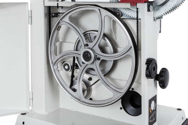 JWBS-12SL – сравнительно крупная и мощная ленточная пила для любительской работы с заготовками высотой до 170 мм. Модель оборудована большим чугунным столом и двухскоростной ременной передачей: высшая ступень обеспечивает высокую производительность по неплотным породам, низшая для твердой древесины, склонной к образованию прижогов.