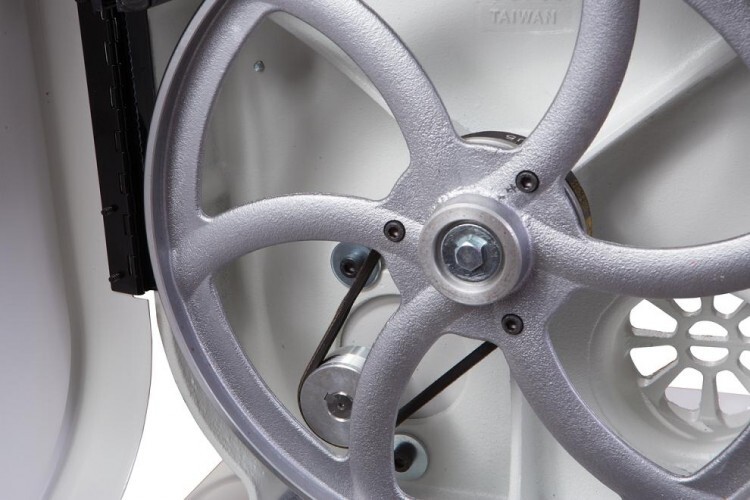 Jet JWBS-14OS-M — ленточная пила с 14-дюймовыми шкивами, массивным чугунным столом, наклоняющимся в обе стороны, и жёсткой чугунной рамой-основанием, что является важнейшим достоинством и серьёзным аргументом в пользу данной модели. Хорошо продуманная и добротно выполненная конструкция соответствует всем основным требованиям профессионального класса, таким как простота, удобство и стабильность настроек.