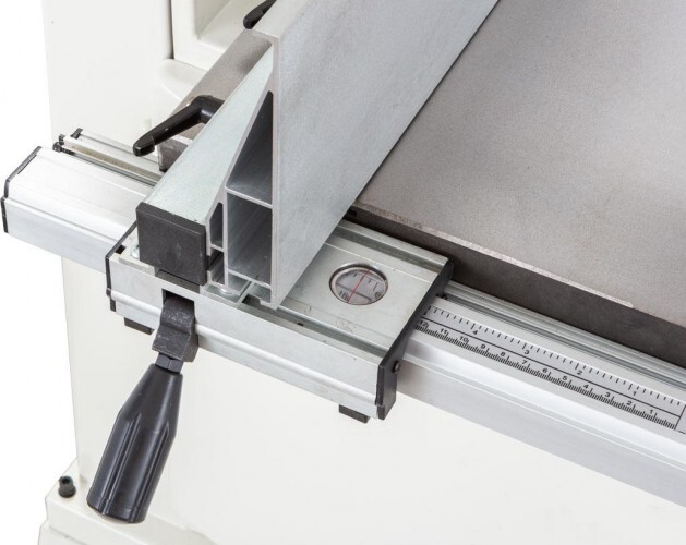 К подобным работам приспособлен и параллельный упор: направляющий профиль в вертикальном положении позволяет надежно фиксировать высокие заготовки при их роспуске на тонкие пластины, в низком – плоские детали, а также для пиления с наклоном. Упор имеет эксцентриковую фиксацию и перемещается вдоль алюминиевого профиля. Для упрощения настройки предусмотрена миллиметровая шкала и увеличительное стекло с риской на корпусе.