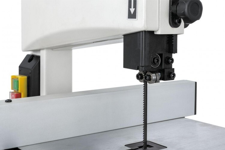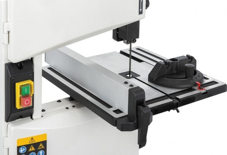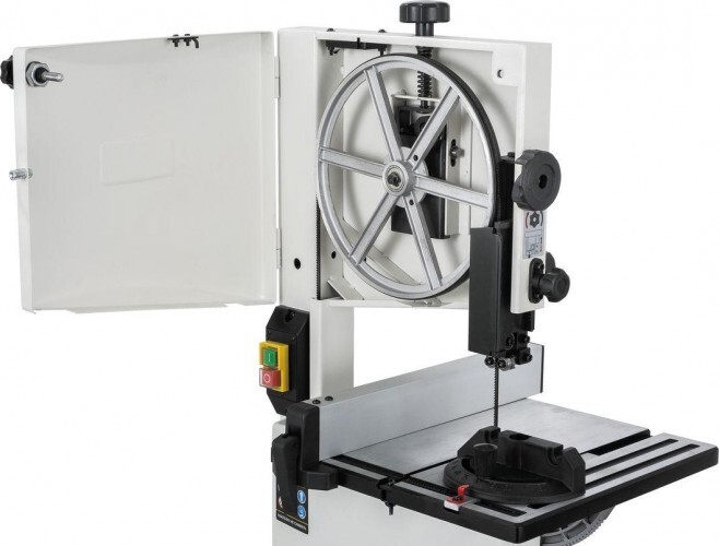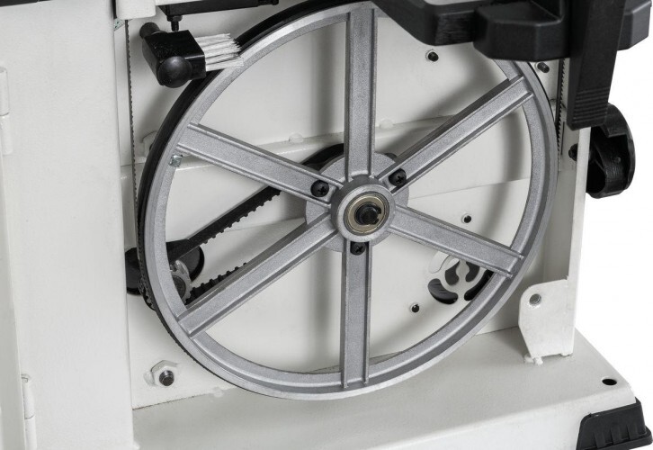 JWBS-9SL – настольный ленточнопильный станок для частного любительского применения. Позволяет распускать заготовки толщиной до 90 и шириной до 225 мм. Укомплектован трехроликовыми направляющими с шарикоподшипниками, обеспечивающими легкое движение ленты, минимальный износ и простоту регулировки. Ведущий шкив приводится во вращение через зубчато-ременную передачу, а не установлен непосредственно на валу двигателя, как часто делают для упрощения конструкции. Такая разнесенная схема дает более плавное без биений вращение и лучшую ремонтопригодность.